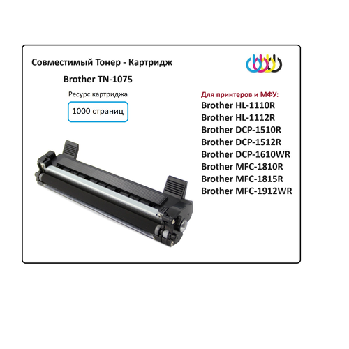 Совместимый Тонер Картридж Brother TN-1075, Brother HL-1110R, HL-1112R, DCP-1512R, DCP-1510R, DCP-1610WR, MFC-1810R, MFC-1815R