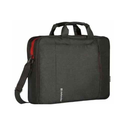 Сумка для ноутбука Defender, Lite, 15,6", полиэстер, с карманом, с ремешком, цвет: чёрный, серая вставка
