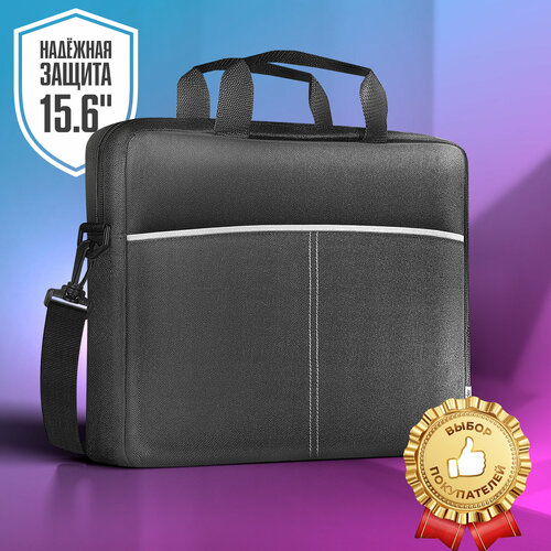 Сумка для ноутбука Defender, Lite, 15,6", полиэстер, с карманом, с ремешком, цвет: чёрный, серая вставка