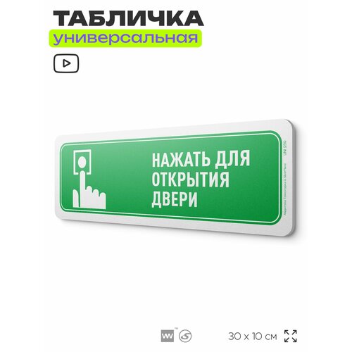 Табличка "Нажать для открытия двери", на дверь и стену, информационная, пластиковая с двусторонним скотчем, 30х10 см, Айдентика Технолоджи