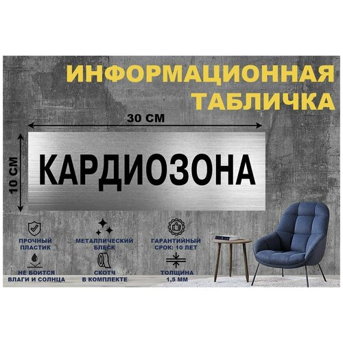 Табличка "кардиозона" на стену и дверь 300*100 мм с двусторонним скотчем