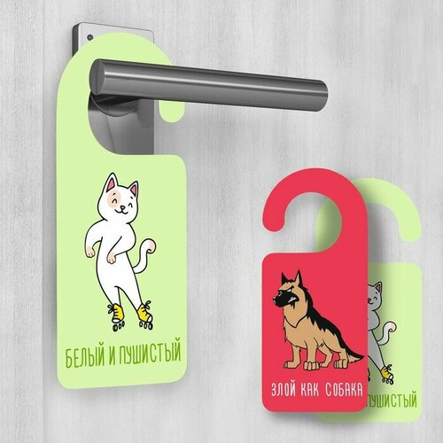 Табличка на дверь "Белый и пушистый / Злюсь как собака"