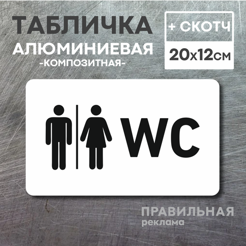 Табличка на туалет WC, 1 шт. 20х12 см. (белый металл композит + скотч)