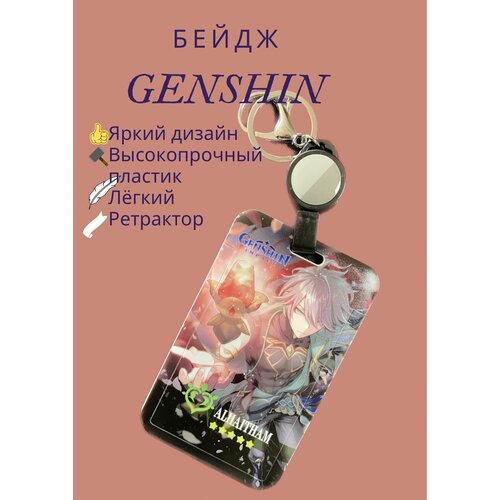 Бейдж для пропуска с ретрактором, картхолдер с лентой 45 см, держатель для карт Аль Хайтам Геншин