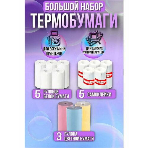 Термо бумага для цветного мини принтера, для карманногофотопринтера, детского фотоаппарата, полароида. Наша бумага для принтера выдает четкие кадры без размытий, картинки будут выглядеть профессионально и ярко долгое время, без выцветаний.