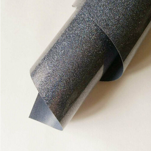 Термотрансферная плёнка глиттер, цвет Тёмное серебро, с фактурным эффектом металлических искрящихся блёсток, размер 25х50см, продается в рулоне