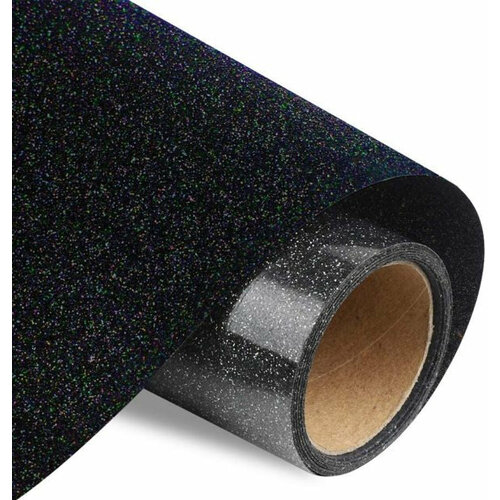 Термотрансферная плёнка глиттер, цвет Черный, с фактурным эффектом металлических искрящихся блесток, размер 25х50см, продается в рулоне