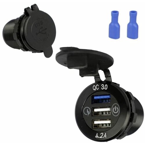 Разъем Usb в авто (врезные) 12V-24V 3USB MRM SC9 (Круглый) QC3.0+2,1A+2,1A