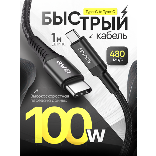 Кабель 5A/100W, Type-C на Type-C, ультра быстрый, 1 метр, 480 мб/сек