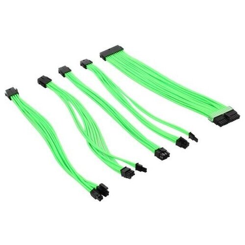 Комплект кабелей-удлинителей 1STPLAYER NGE-001, 1x24pin, 1x(4+4)pin, 2x(6+2)pin, 1x8pin, 350mm, оплётка, NEON GREEN