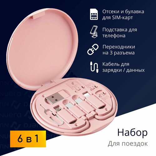 Набор 6 в 1: переходники для телефона (USB, Type-C, Lightning, micro USB), кабель, хранение СИМ, футляр /