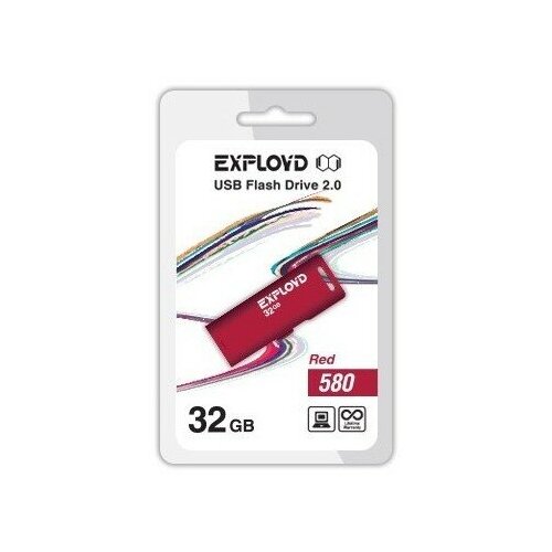 Флешка Exployd 570, 32 Гб, USB2.0, чт до 15 Мб/с, зап до 8 Мб/с, красная