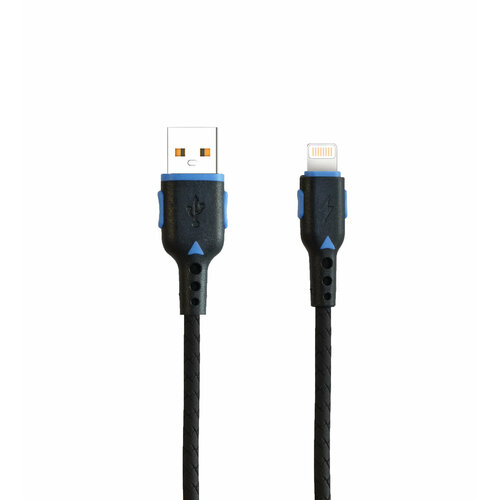 Кабель USB - 8 pin FaisON K-90 Force, 1.0м, 3,0А, цвет: чёрный, синяя вставка