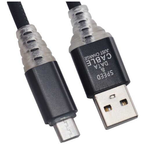 USB кабель "LP" Micro USB "Змея" LED TPE (черный/блистер)