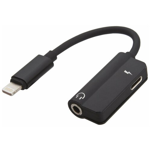 Аудиокабель переходник "LP" Apple Lightning 8-pin на 3,5 мм. + зарядка (черный/европакет)