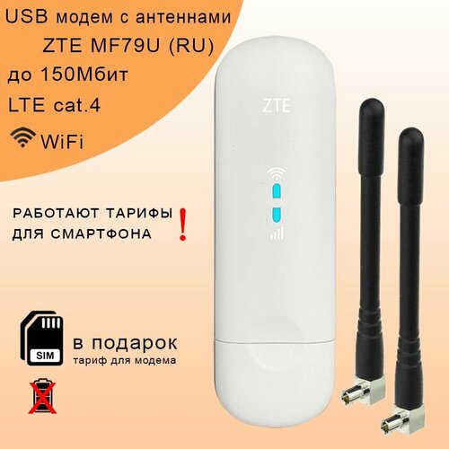 USB модем ZTE MF79U (RU) I сим карта МТС с интернетом и раздачей, 30ГБ за 350р/мес белый