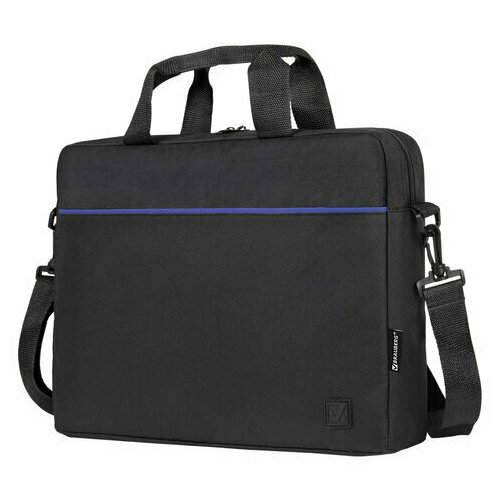 Сумка портфель Brauberg Practical с отделением для ноутбука 15,6", Blue line, черная, 29х40х7 см, 272603