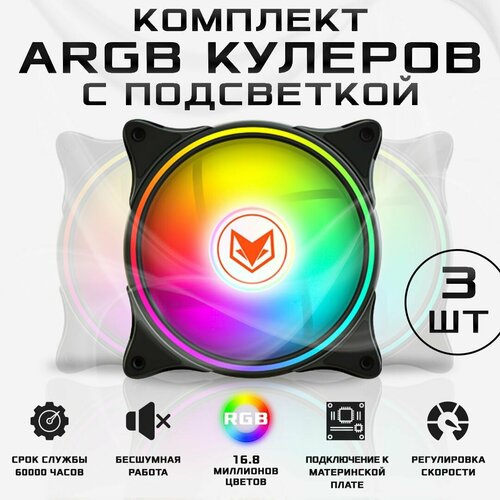 Вентилятор для корпуса 120 мм *3 шт RGB, Вентиляторы для ПК с fRGB подсветкой