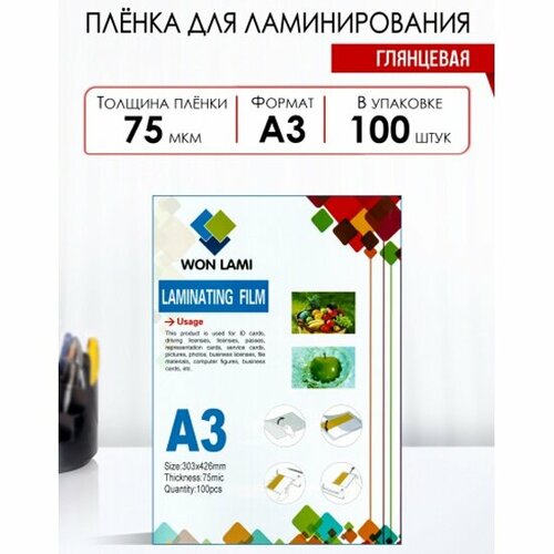Пленка для ламинирования WF А3, 303х426 мм, 75 мкм, 100 шт/уп