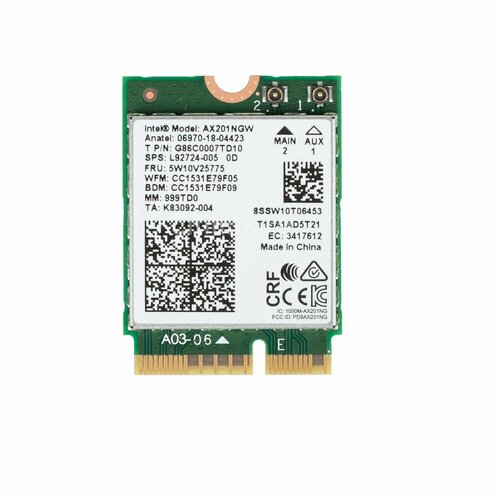 Wi-Fi-адаптер Intel Intel® серии 6 AX201 (AX201. NGW) 2230, 2x2 AX+BT, No vPro®,999TD0 (M.2: CNVio2)