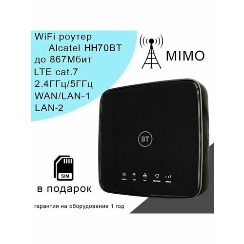 Роутер Alcatel BT HH70BT, cat.7, 2,4ГГц/5ГГц, 867Мбит/с с внешними антеннами
