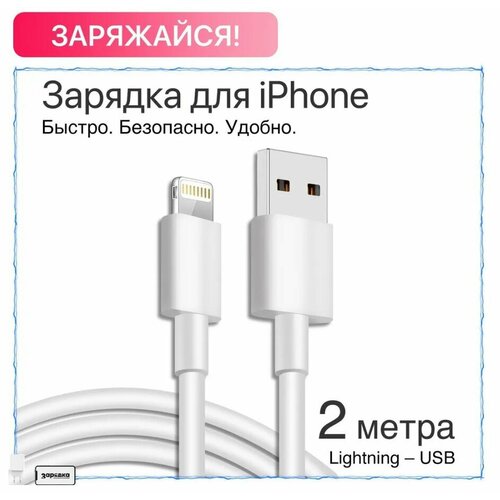Зарядка для айфона / GQbox / Кабель для айфона / Кабель для Зарядки iPhone 5-14 и iPad USB Lightning / Длинный провод 2 метра / Зарядка на айфон