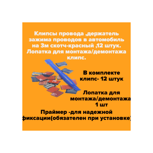 Клипсы провода , держатель зажима проводов в автомобиль на 3м скотч-красный ,12 штук. Лопатка для монтажа/демонтажа клипс.