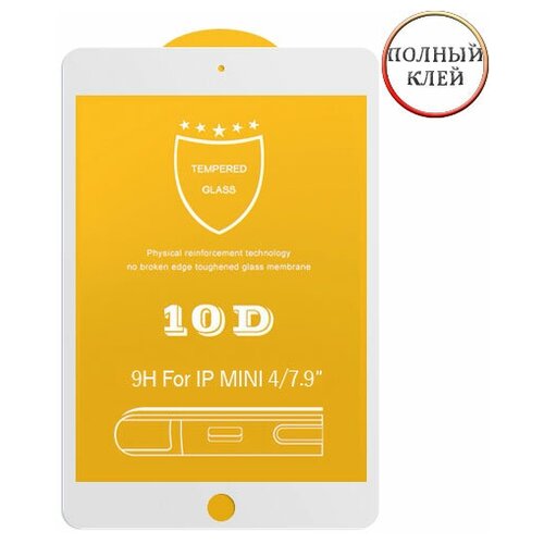 Защитное стекло 10D для Apple iPad mini 4 клеится на весь экран 7.9" с белой рамкой