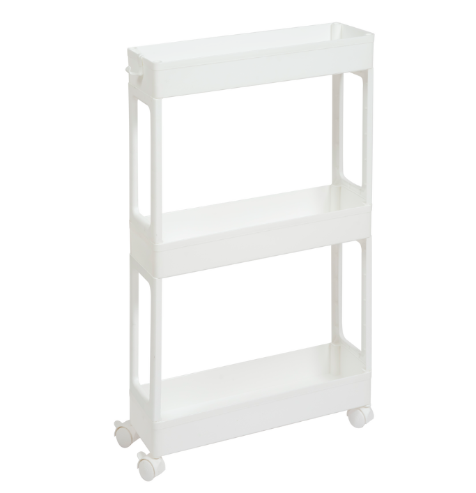 Этажерка узкая 3-х ярусная на колесах (белый) 100050701289