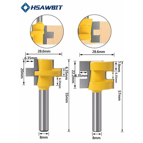 Набор фрез пазо-шиповых, хвостовик 8mm 8x22.2mm