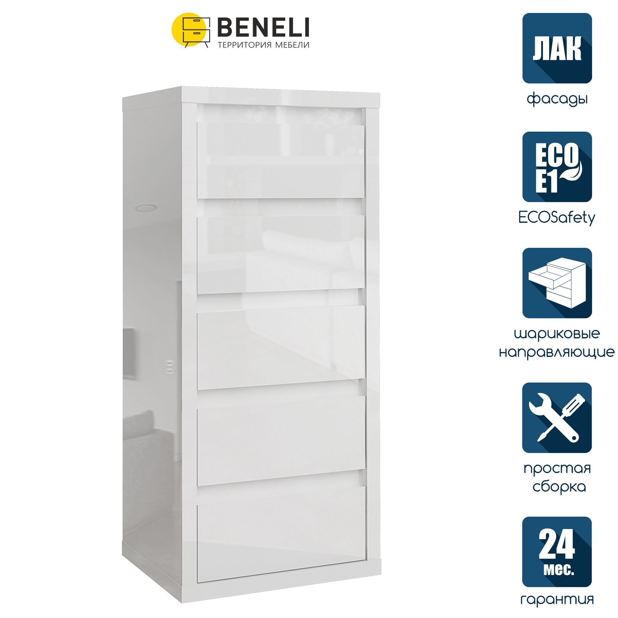 Комод Beneli НОРДЕН, 5 ящиков, Белый глянец, 54,6х40х121,3 см
