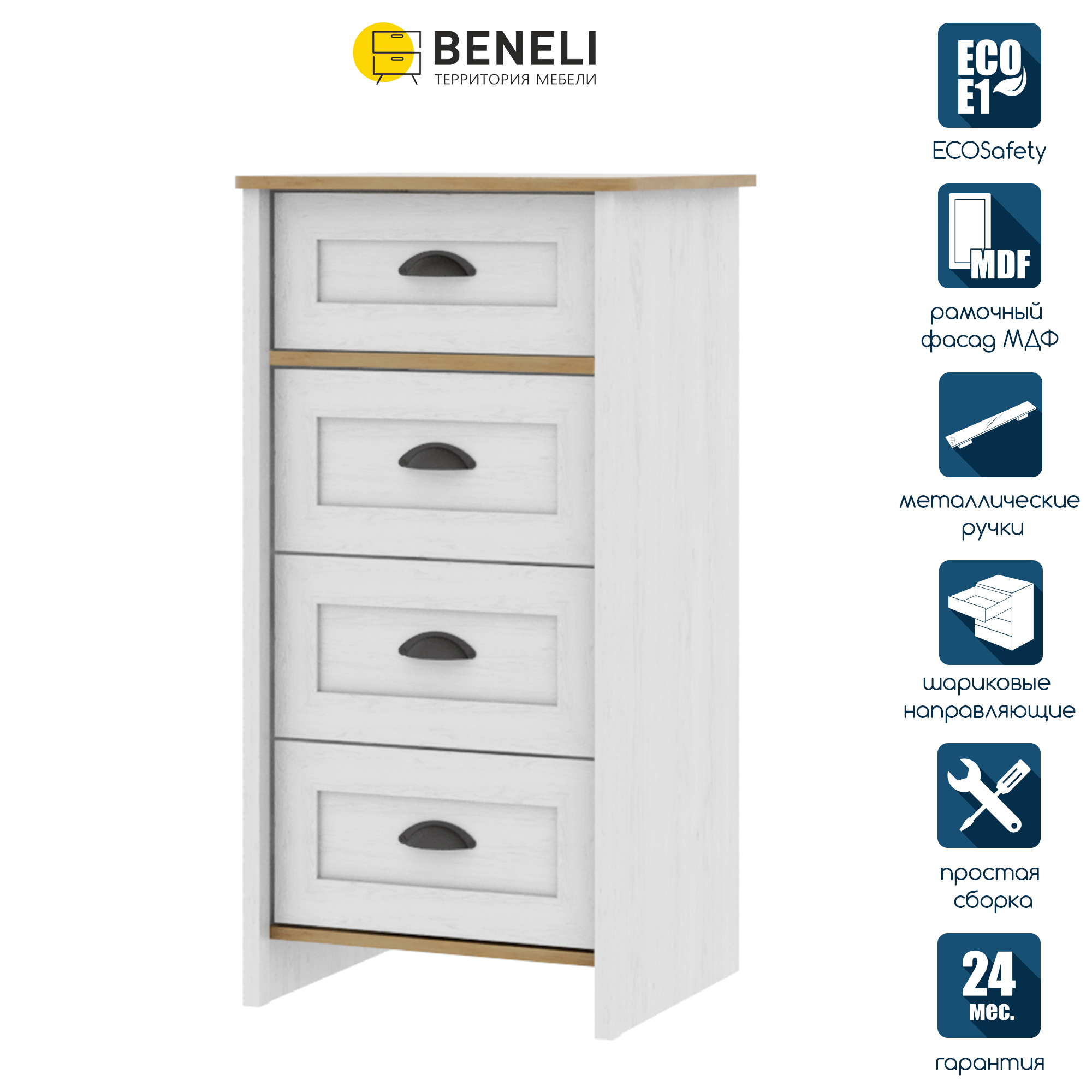 Комод Beneli ТИФАНИ, 4 ящика, Дуб небраска/Белая сосна 600010979552