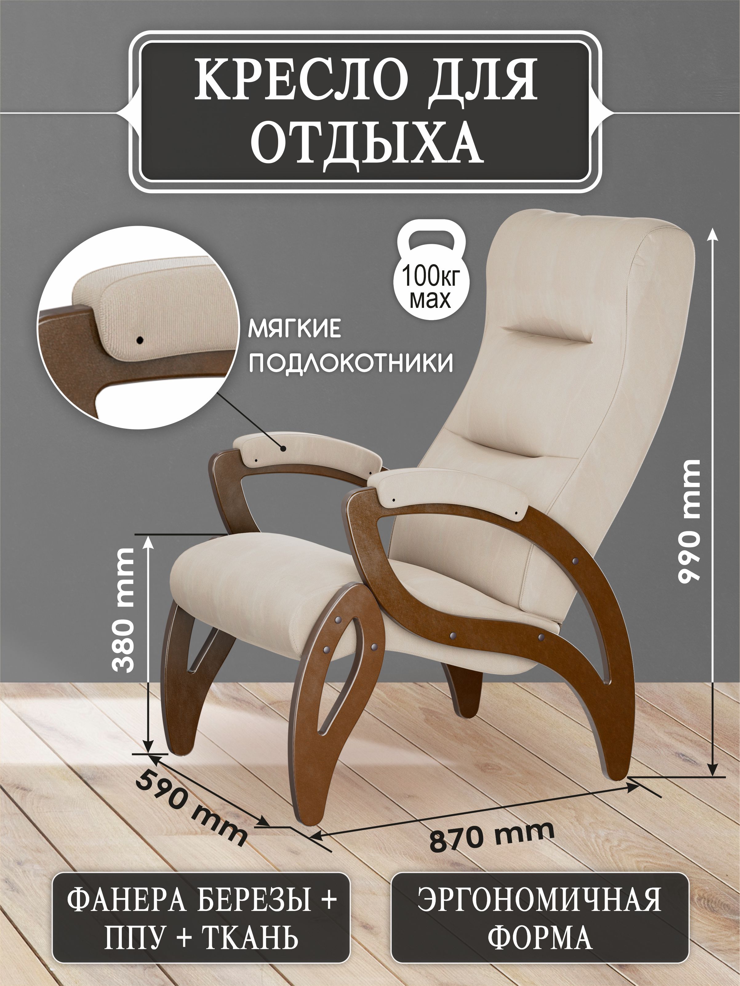 Кресло для отдыха Мебелик Весна Компакт Ткань ультра санд, каркас орех антик