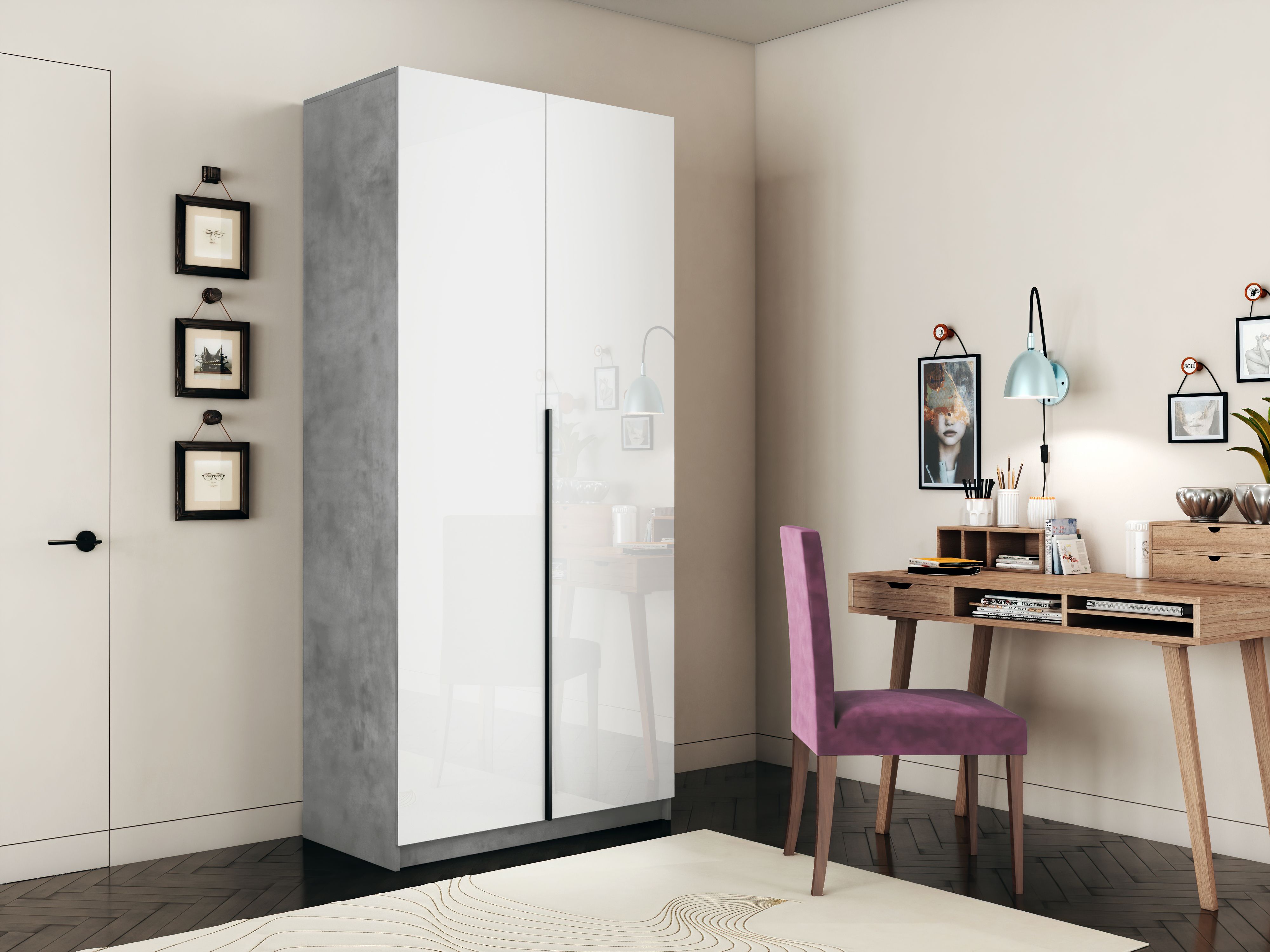 Шкаф Е1 Локер Распашной с белым стеклом и модулем 101x52,5x220 см, Бетон