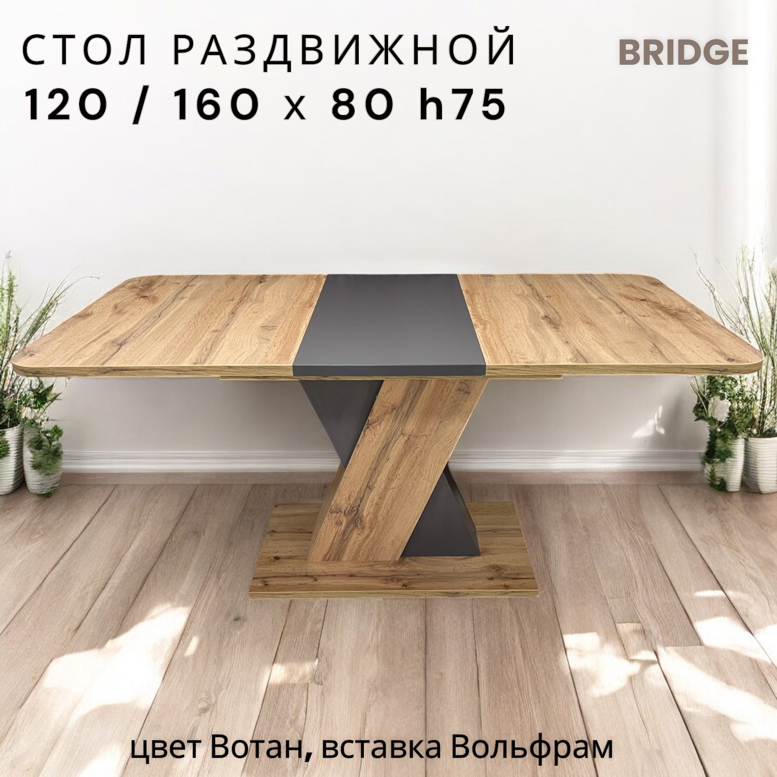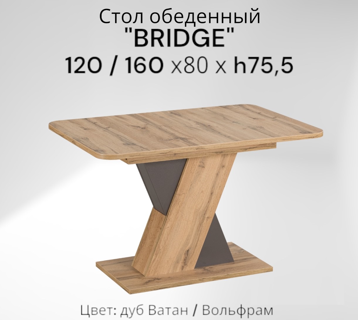 Стол обеденный Терминал BRIDGE Дуб Вотан/Вольфрам 120/160*80*75,5