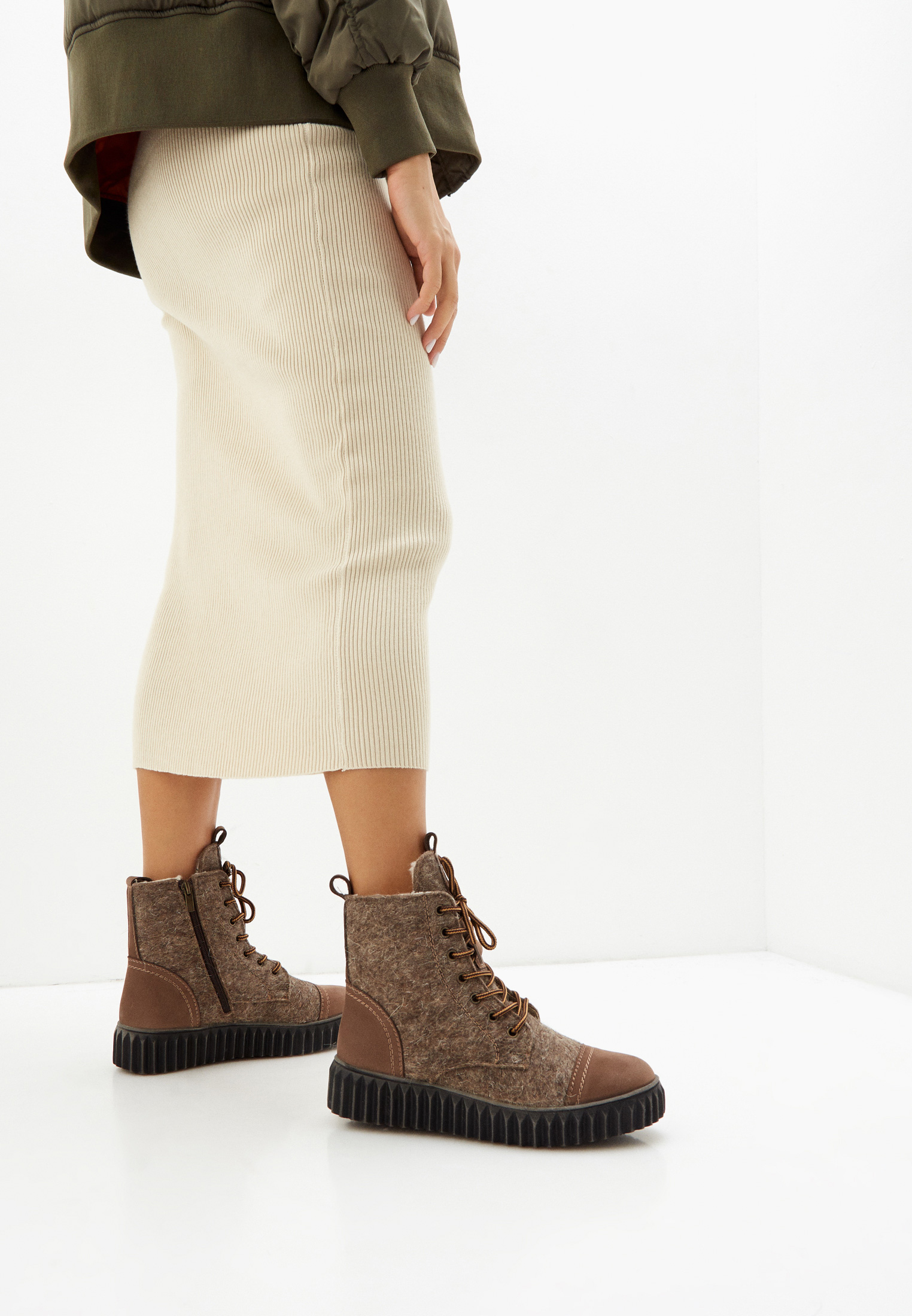 термоэластопластБотинки Makfly. Цвет: коричневый. Материал: войлок, натуральная кожа. Сезон: Весна-лето 2021.