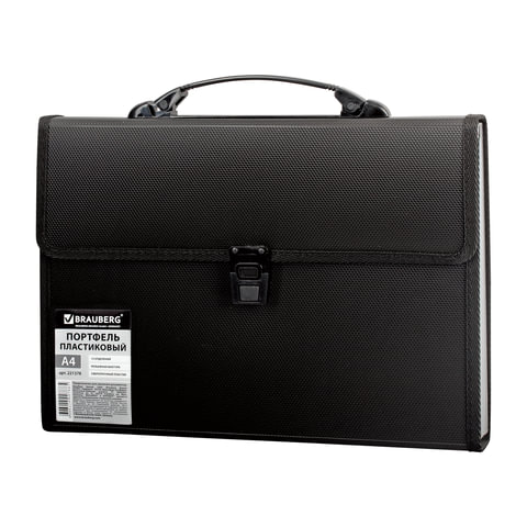 Папка - портфель для документов Brauberg, серая, А4+,375х305х60мм,4 отдел,2 карм,пластик серый