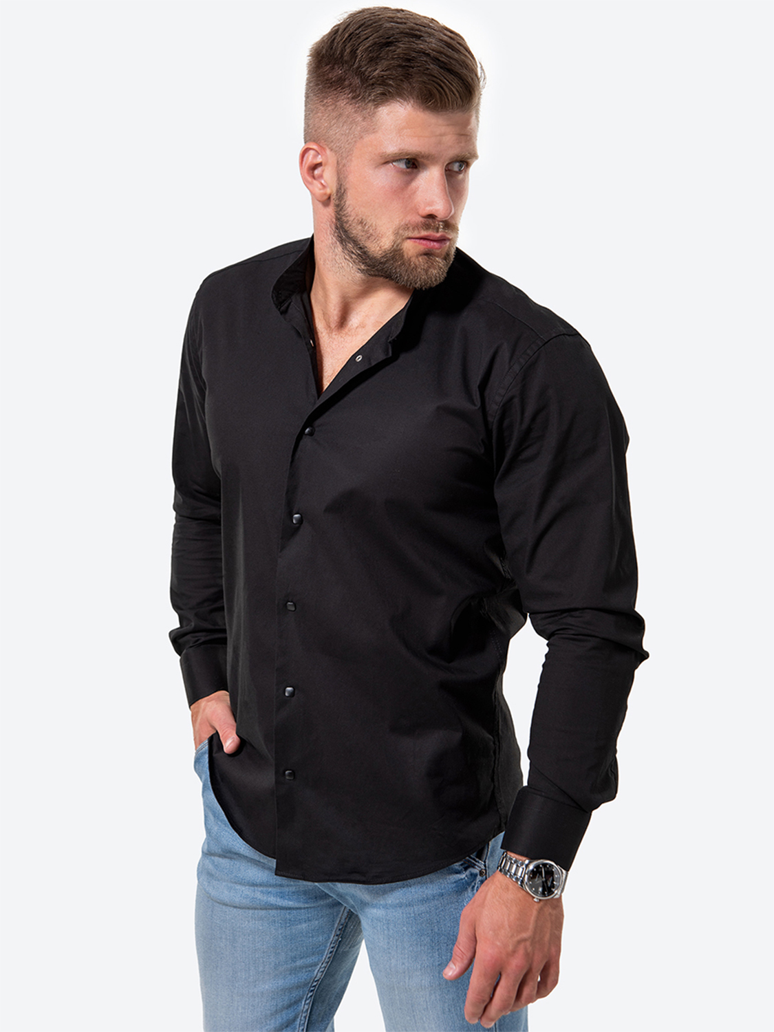 Рубашка мужская HappyFox HFCL1002 черная 48 RU