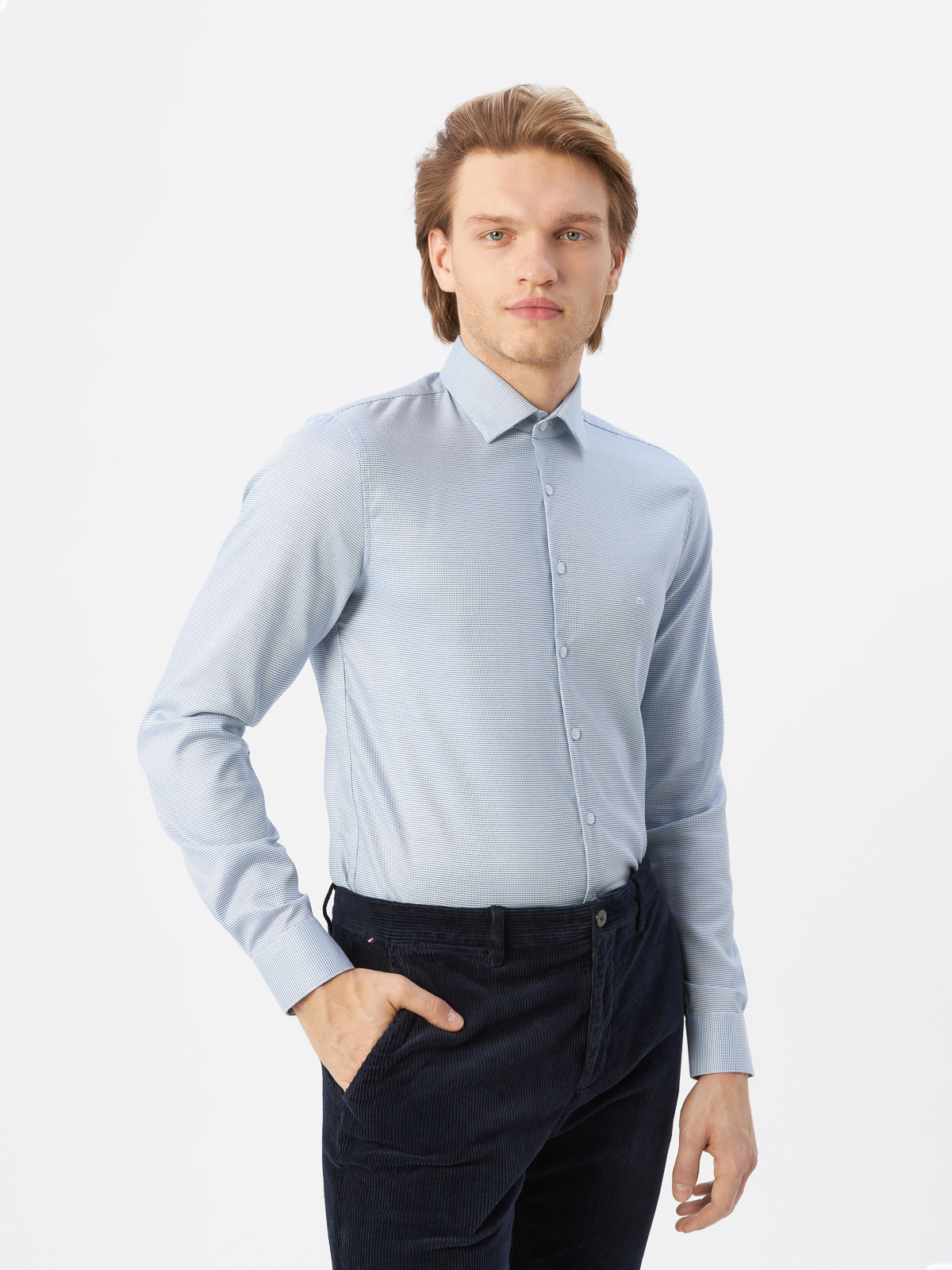 Рубашка мужская Calvin Klein K10K1105490GY голубая, размер 41