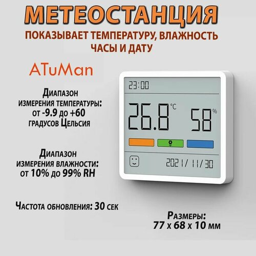 Датчик температуры и влажности с часами Duka AtuMan TH1, домашняя метеостанция