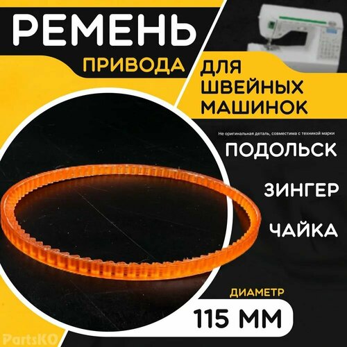 Ремень для швейной машинки и оверлоков Подольск, Чайка, Веритас, Зингер. Диаметр 115 мм. Зубчатый ремень из прочного материала. Универсальная запчасть. Комплект 1 шт.