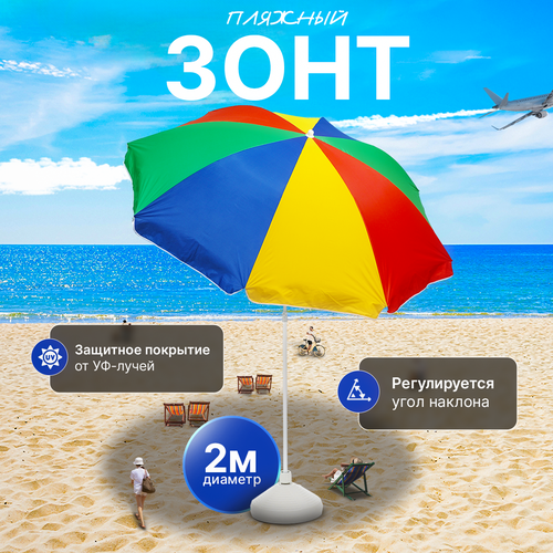 Зонт пляжный большой с наклоном , 200 см , складной , от солнца , радуга, Ами Мебель