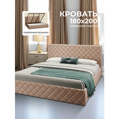 Двуспальная кровать 180х200 см с подъемным механизмом Валенсия для дома и спальни, вельвет, Ами Мебель