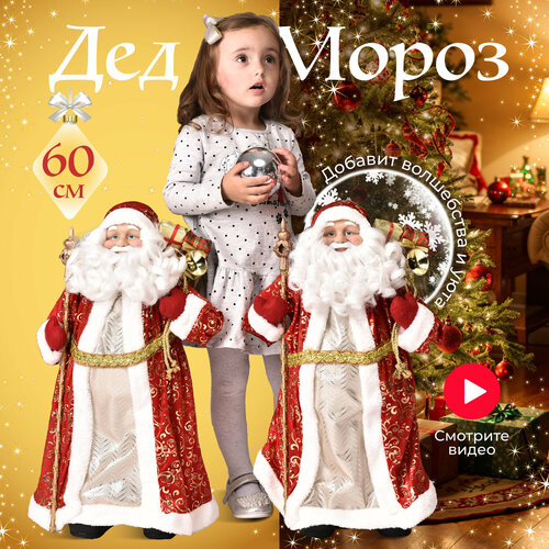 Игрушка новогодняя под елку Дед Мороз (диз.12) в красной шубе, подарок на праздник, красный, высота 60 см, Ами мебель