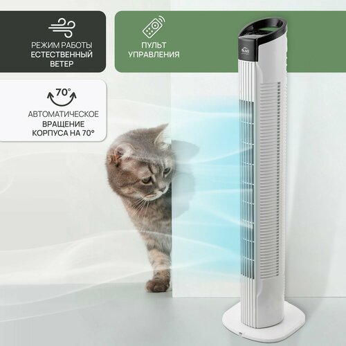 Вентилятор напольный с пультом управления колонный, поворотный вентилятор настольный, мощность 50 вт, 3 скорости, 78 см высота, Ами Мебель