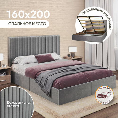 Двуспальная кровать 160х200 см Сицилия с подъемным механизмом для дома и спальни, вельвет светло-серый, Ами Мебель