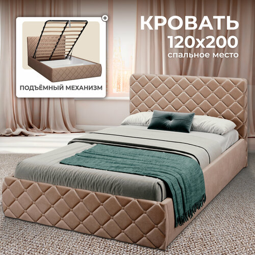 Полутороспальная кровать 120х200 см с подъемным механизмом Валенсия для дома и спальни, вельвет коричневый, Ами Мебель