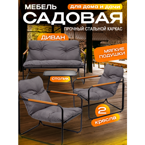 Набор садовой мебели Kansas, диван, 2 кресла и стол, комплект для дачи сада и дома, ткань текстилен, Ами Мебель Беларусь