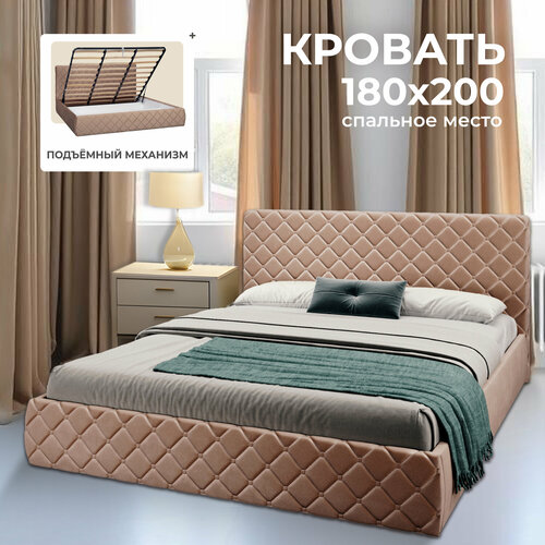 Двуспальная кровать 180х200 см с подъемным механизмом Валенсия для дома и спальни, вельвет коричневый, Ами Мебель