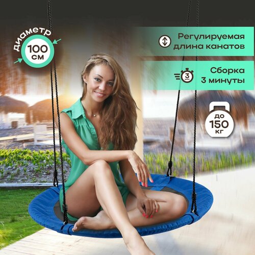 Кресло гамак подвесное Nest, качели гнездо садовые, взрослые, детские для дачи и сада, уличные, качалка диаметр 100 см, синий, черный, АМИ мебель